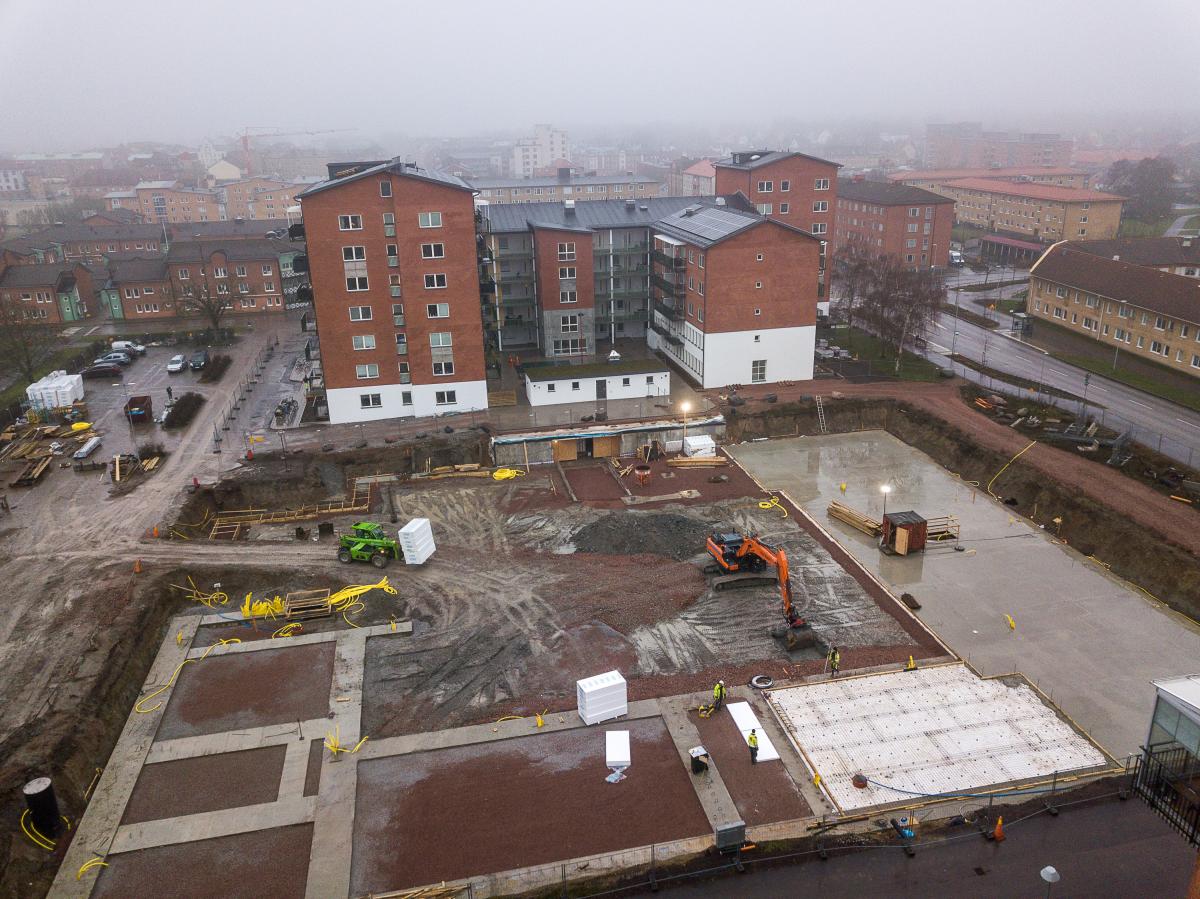 Under 2019 har grunden till det nya kvarteret förberetts. Det blir ett kringbyggt kvarter med byggnader i 4 till 8 våningsplan.